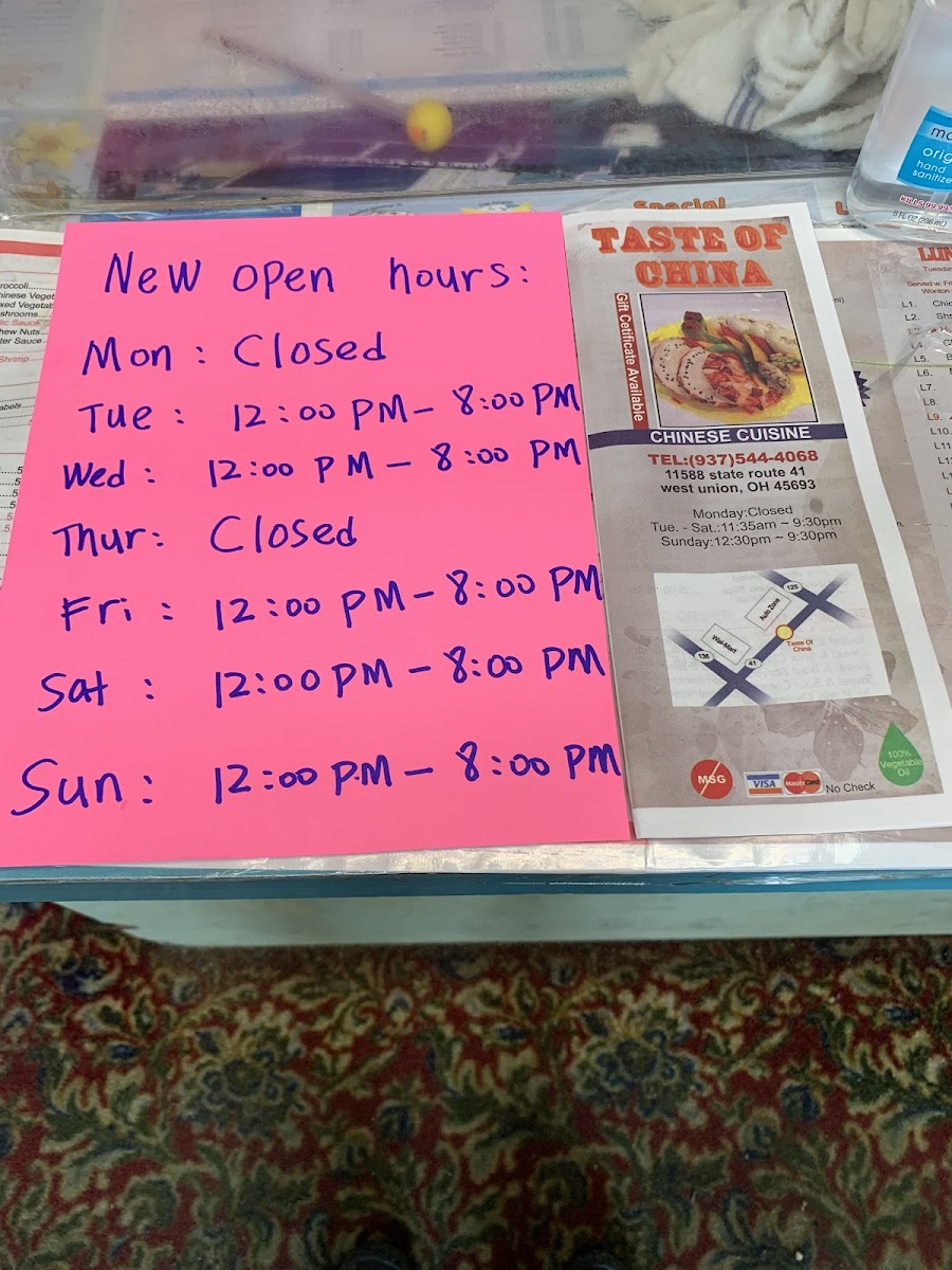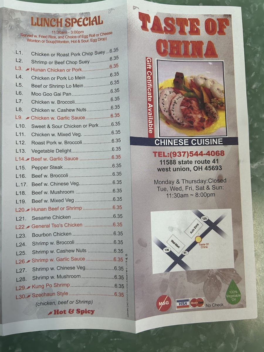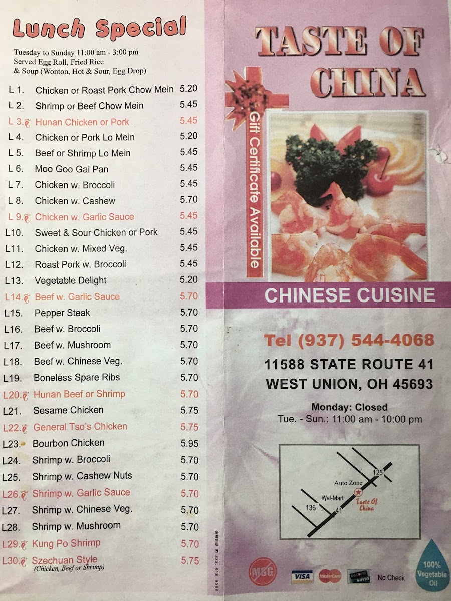 Taste of China - West Union Menu